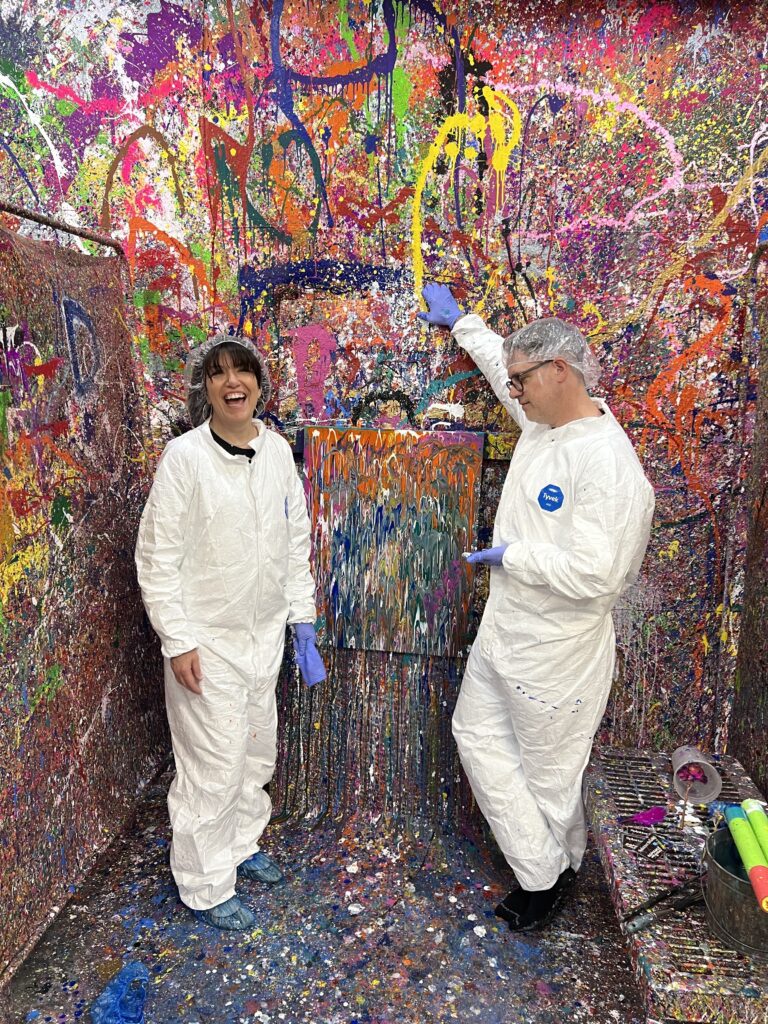 This photo was taken during a splatter paint session we did together, a completely different way of making art side by side. No expectations, no outcome, just showing up and creating together in the moment.